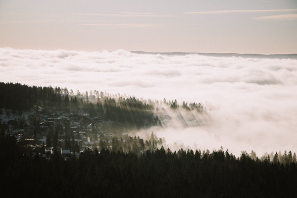 A morning photographic the clouds in Oslo from above near Holmenkollen.