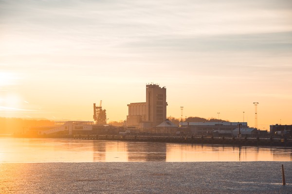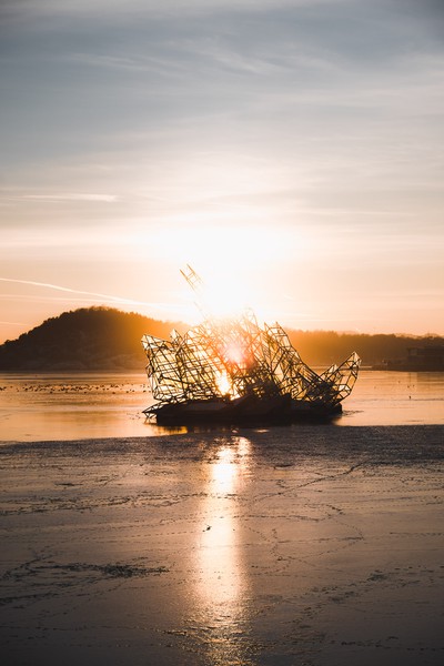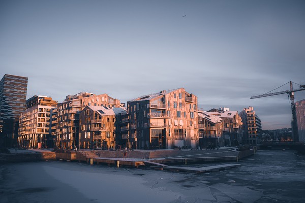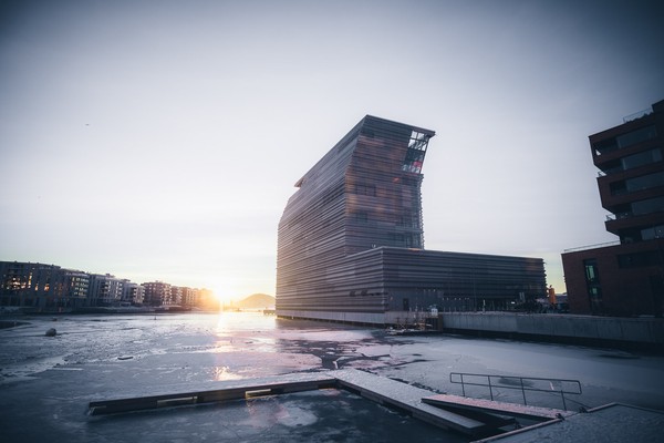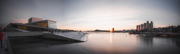 Cold and wintery sunset at Bjørvika on Second Christmas Day